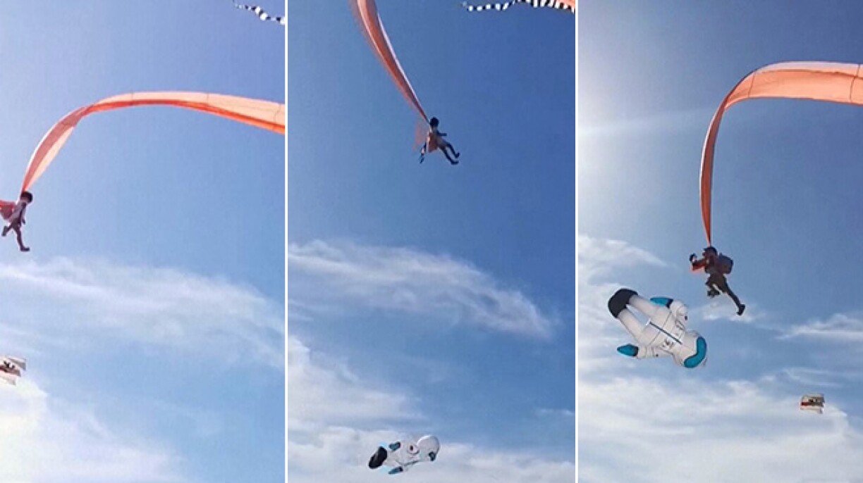 A video that has been circulating on social media shows the girl entangled to a kite and being swept up by strong winds before she fell into a crowd of spectators.