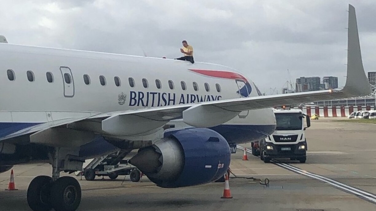James Brown, a Paralympic bronze medallist, went one step further, climbing on to the hull of a British Airways plane.