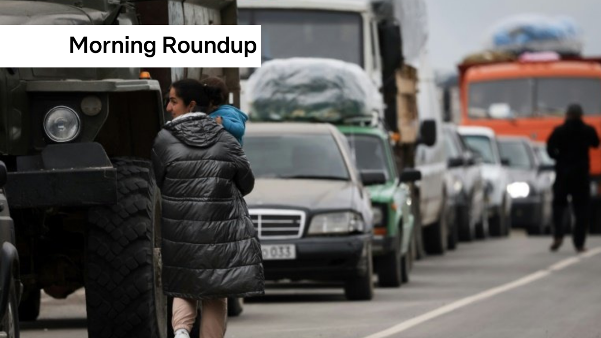 ONGOING CONFLICT - Envoys from Baku and Yerevan prepared to meet in Brussels for talks on Tuesday as thousands of refugees fled Nagorno-Karabakh after Azerbaijan’s lightning takeover of the majority ethnic Armenian enclave. Last week, an offensive by Baku’s forces established Azerbaijani control over the breakaway region, forcing ethnic Armenian fighters to disarm. Tuesday’s meeting in Brussels will be the first such encounter since the offensive but the leaders of both countries are scheduled to meet next month.