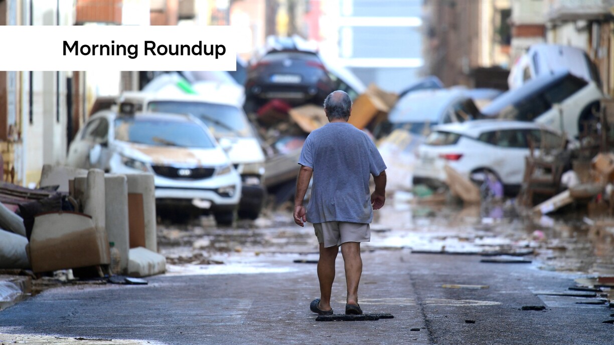 SPAIN FLOODS – Emergency teams in Spain are searching for those still missing after floods hit, killing at least 95 people. Hundreds of soldiers have been sent to Valencia to help with the search and rescue mission after parts of the region recorded a year’s rain within hours.