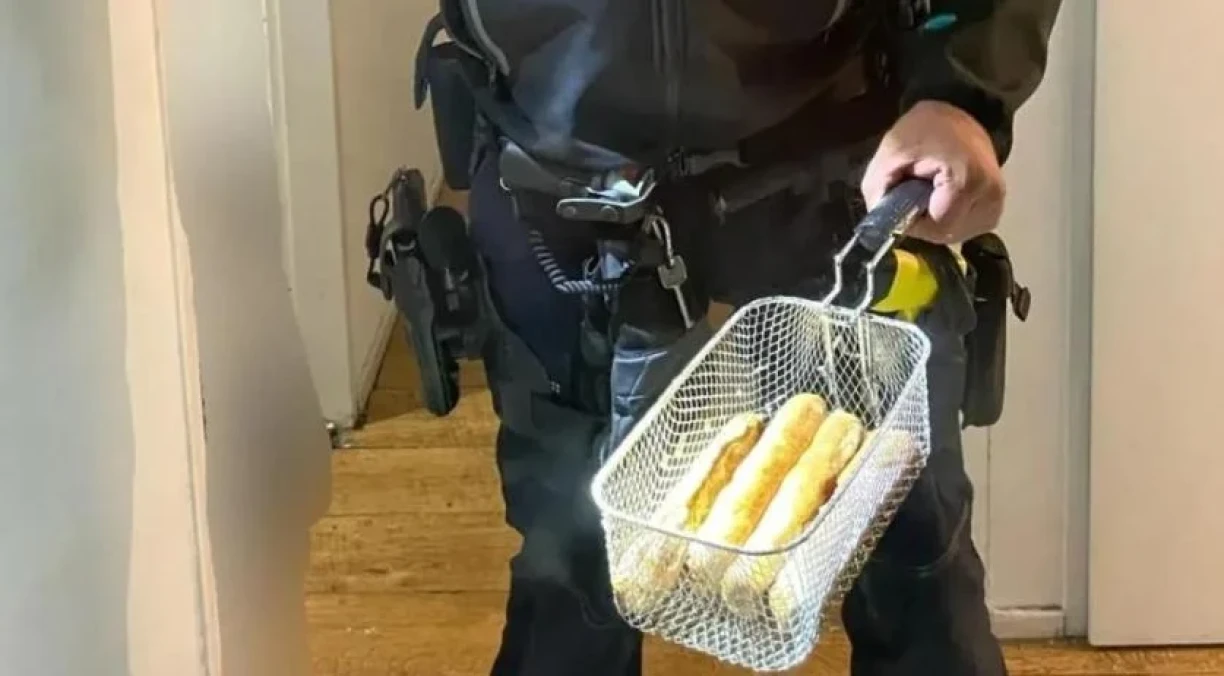 Responding to reports of a home invasion, police said that when catching the burglar red-handed, “the suspect was found frying frikandellen in the house.”