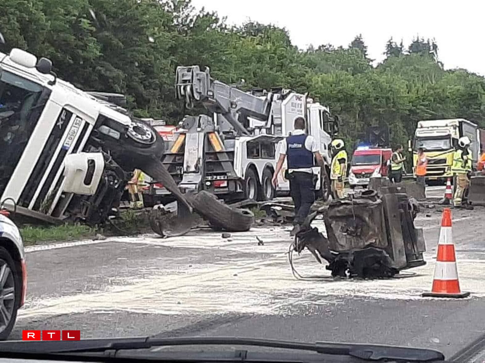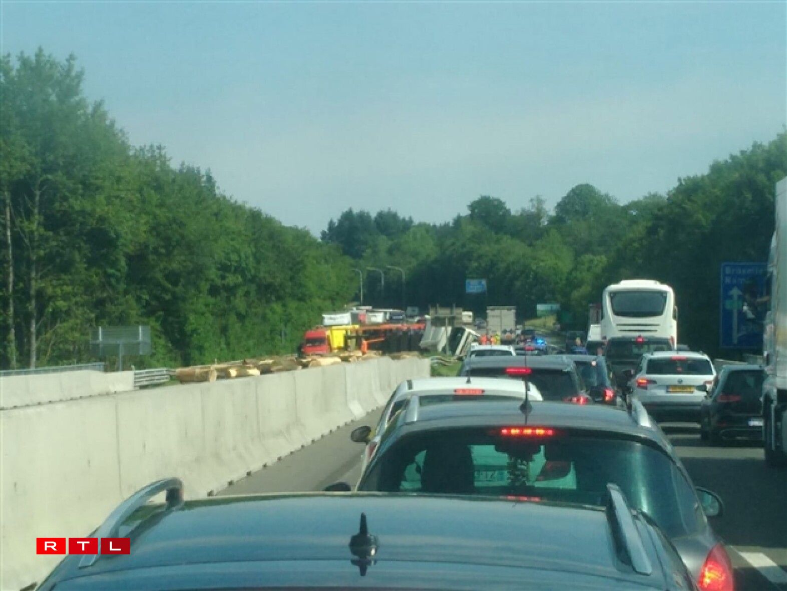 At noon, the motorway was still closed from Custinnes to Arlon and two lanes had been reduced heading towards Brussels.