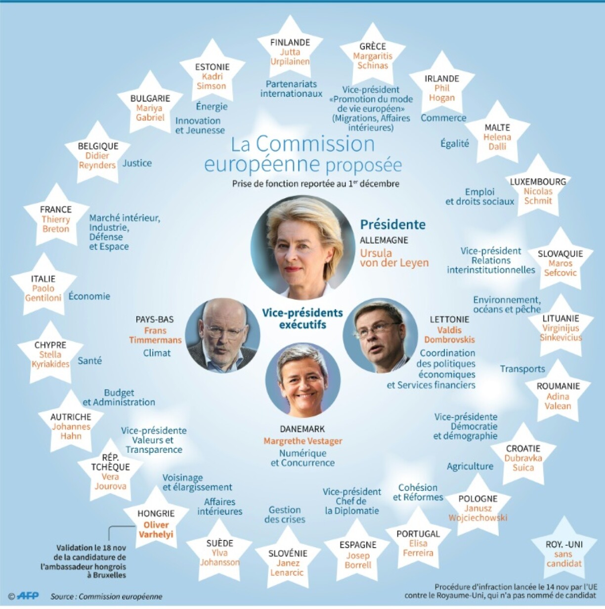 But on Wednesday the European Parliament in Strasbourg gave the former German defence minister a 461 to 157 vote of confidence to allow her 27-strong commission to get to work on December 1.