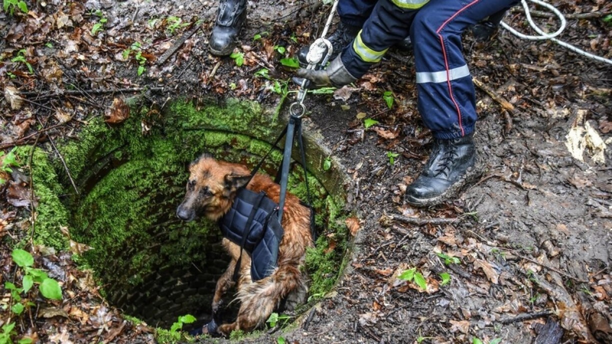 Another timely intervention by the fire service resulted in the rescue of Jazz, a German Shepherd who fell down a well while on a forest walk. The dog was recovered safe and sound by a team of fire fighters and animal rescue operatives, using climbing equipment to scale the well, which was 1 metre wide and 3 metres deep.