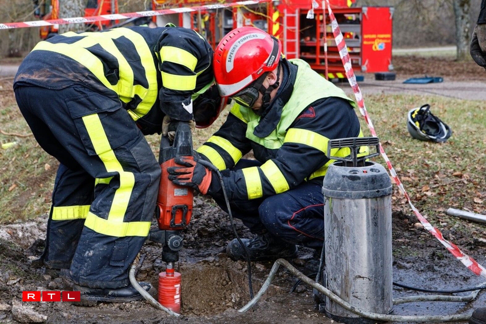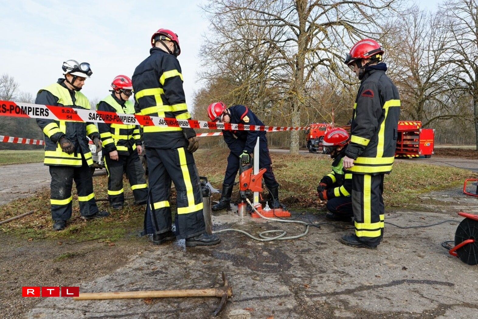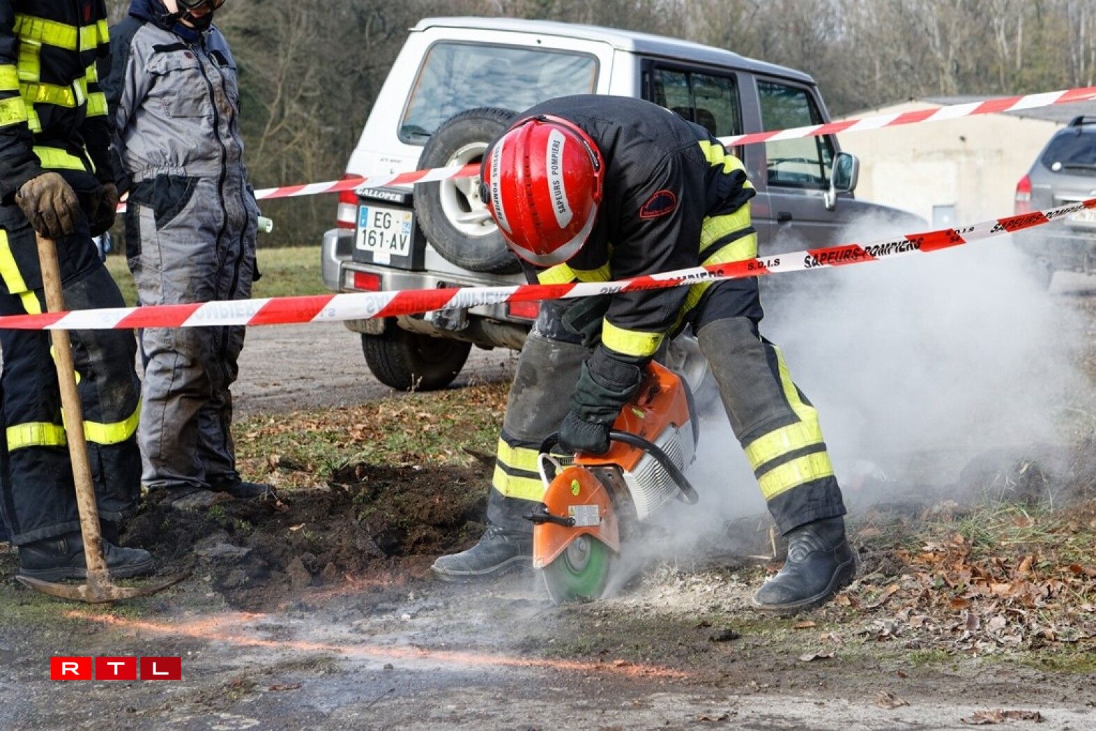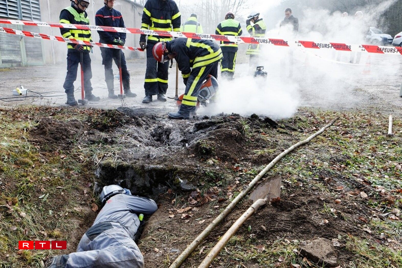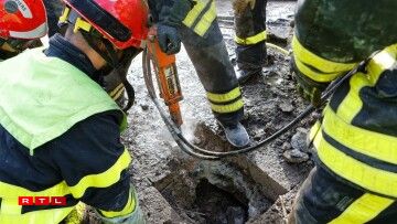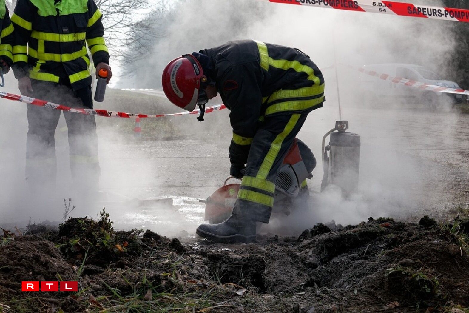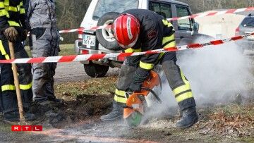 As the access to the pipeline was blocked by a pile of earth, firefighters specialising in clearing operations were mobilised to create a new opening across the road. The roads, dating back to the old NATO bases, were considered extremely solid, said one of the fire fighters.