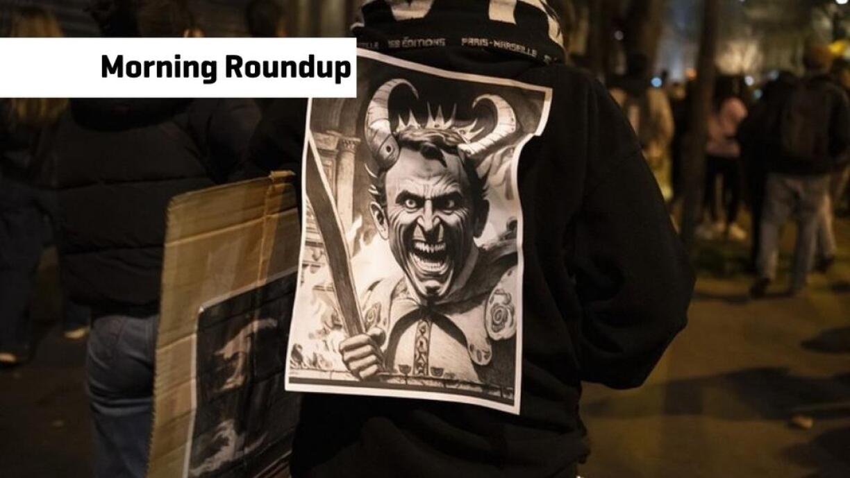 FRANCE PROTESTS - French police have fired teargas during clashes with protesters in several cities, after the government narrowly survived a no-confidence vote in parliament over its pension reform plan. In Paris, protesters set fire to bins and rubbish. Up to 170 people have been arrested. A new round of strikes and protests have been called on Thursday and are expected to again bring public transport to a standstill in several areas.