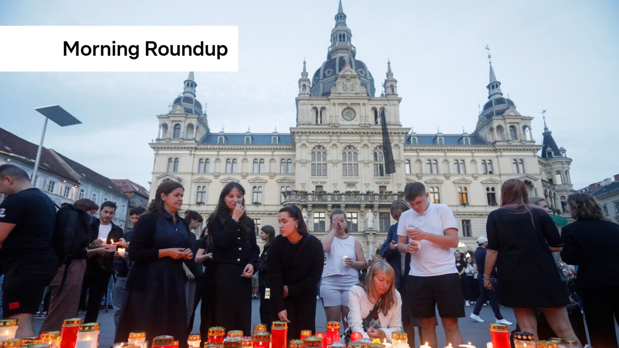 AUSTRIA SCHOOL SHOOTING – Hundreds of mourners have held candlelit vigils for 10 people killed in a school shooting in the Austrian city of Graz. Local police said the perpetrator was a 21-year-old former pupil at the school. He used two legally-owned weapons, acted alone, and eventually killed himself.