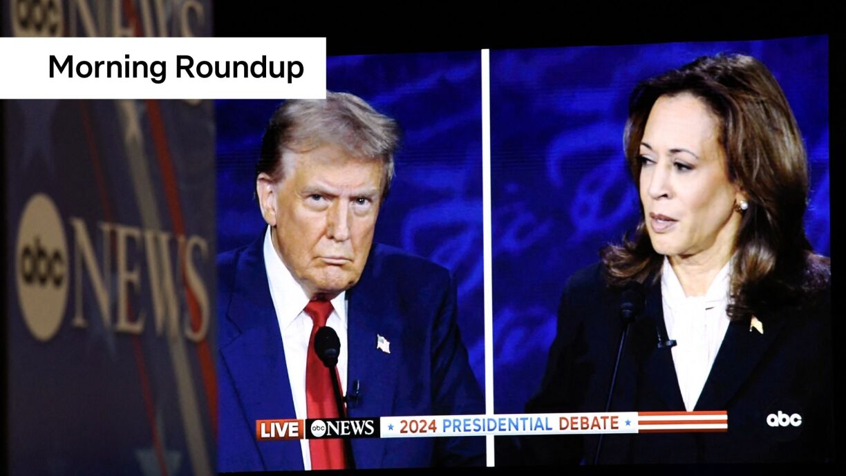 US ELECTION DEBATE - The US Presidential candidates Kamala Harris and Donald Trump have clashed over immigration, abortion and the economy in their first televised debate of the campaign. Vice-president Harris called the former President a laughing stock on the world stage and said he would be manipulated by dictators if he returned to the White House. Donald Trump criticised American military aid to Ukraine, as well as accusing Kamala Harris of having no economic plans.