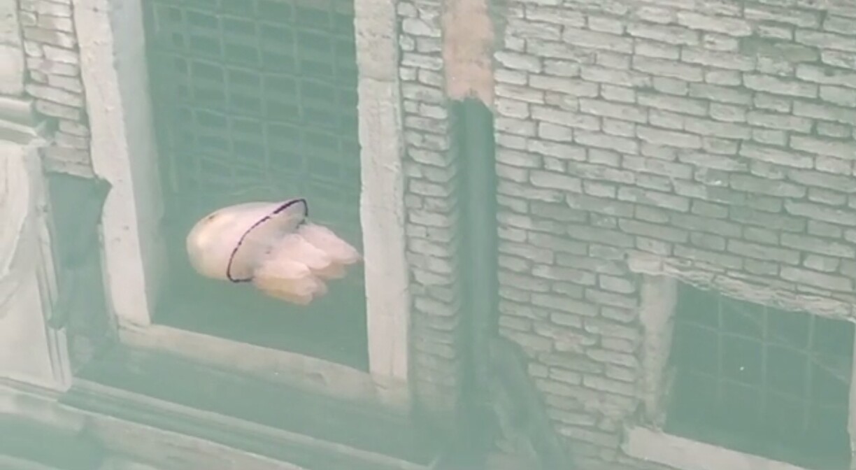 Biologist Andrew Mangoni captured the video of the large jellyfish peacefully gliding through a canal near St Mark’s Square in picture-perfect Venice. The area is usually bustling with tourists but currently eerily empty due to the ongoing coronavirus crisis.