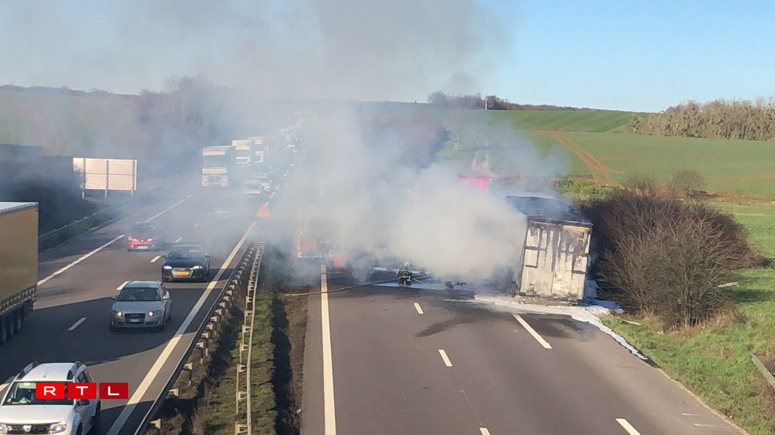 The truck went up in flames at the French-Luxembourgish border on Wednesday afternoon, impacting northbound traffic from Thionville to Luxembourg. There have also been tailbacks in the opposite direction.