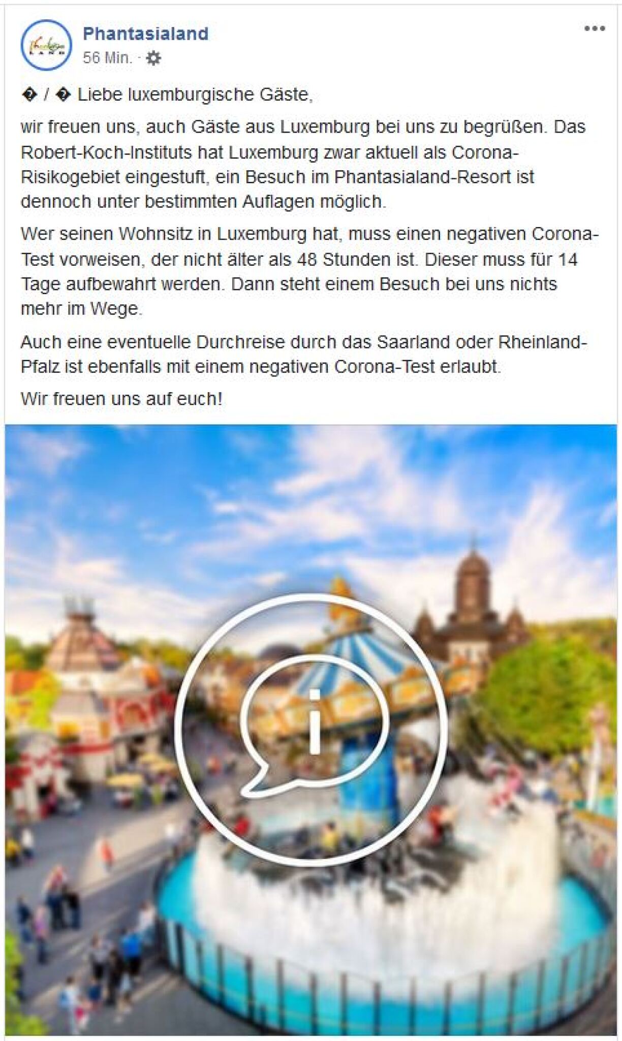 According to the statement, which triggered uproar on social media, Luxembourg residents can still enter the park under one condition: they need to present a negative Covid-19 test that is not older than 48 hours.