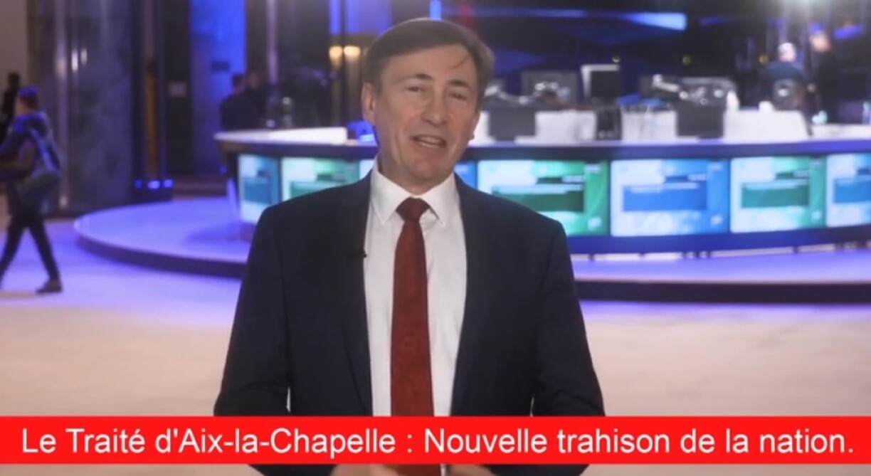 Several days ago, the French MEP Bernard Monot, formerly of the Front National but having joined the party Debout la France in 2018, uploaded a scaremongering video titled “The Aix-la-Chapelle treaty: a new betrayal of the nation”.