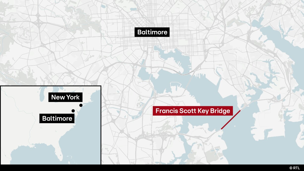 Ship monitoring website MarineTraffic showed a Singapore-flagged container ship called the Dali stopped under the bridge early Tuesday.