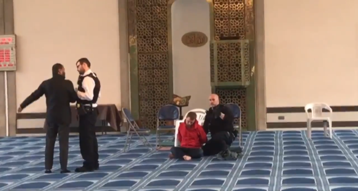 Videos at the scene show a man in red being arrested, who witnesses say was seen stabbing the man in the neck.