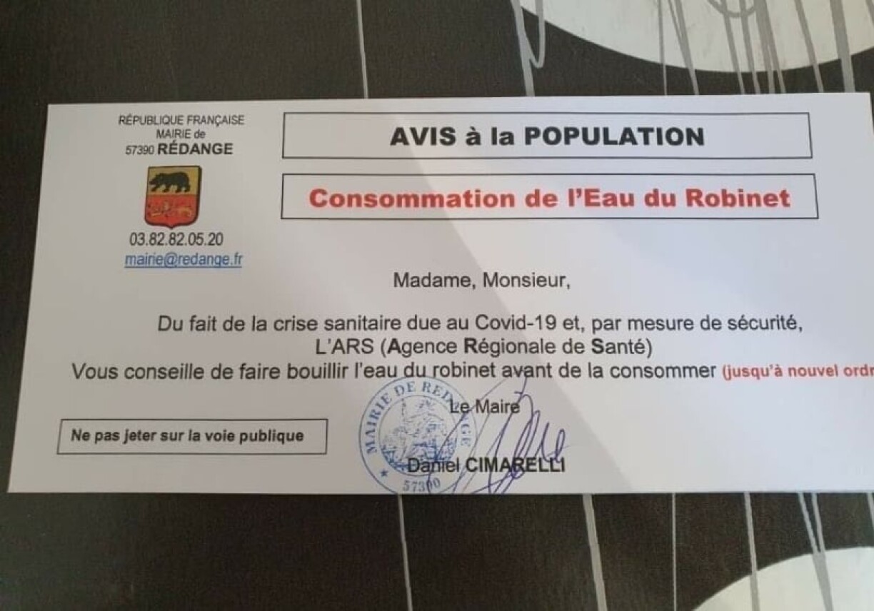 When contacted by RTL, the mayor of Rédange, Daniel Cimarelli, said the leaflet was legitimate. The opinion comes from the town hall, but Cimarelli justified himself by explaining that the press release is linked to a problem of water turbidity due to heavy rainfall in recent weeks.