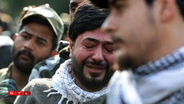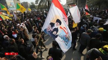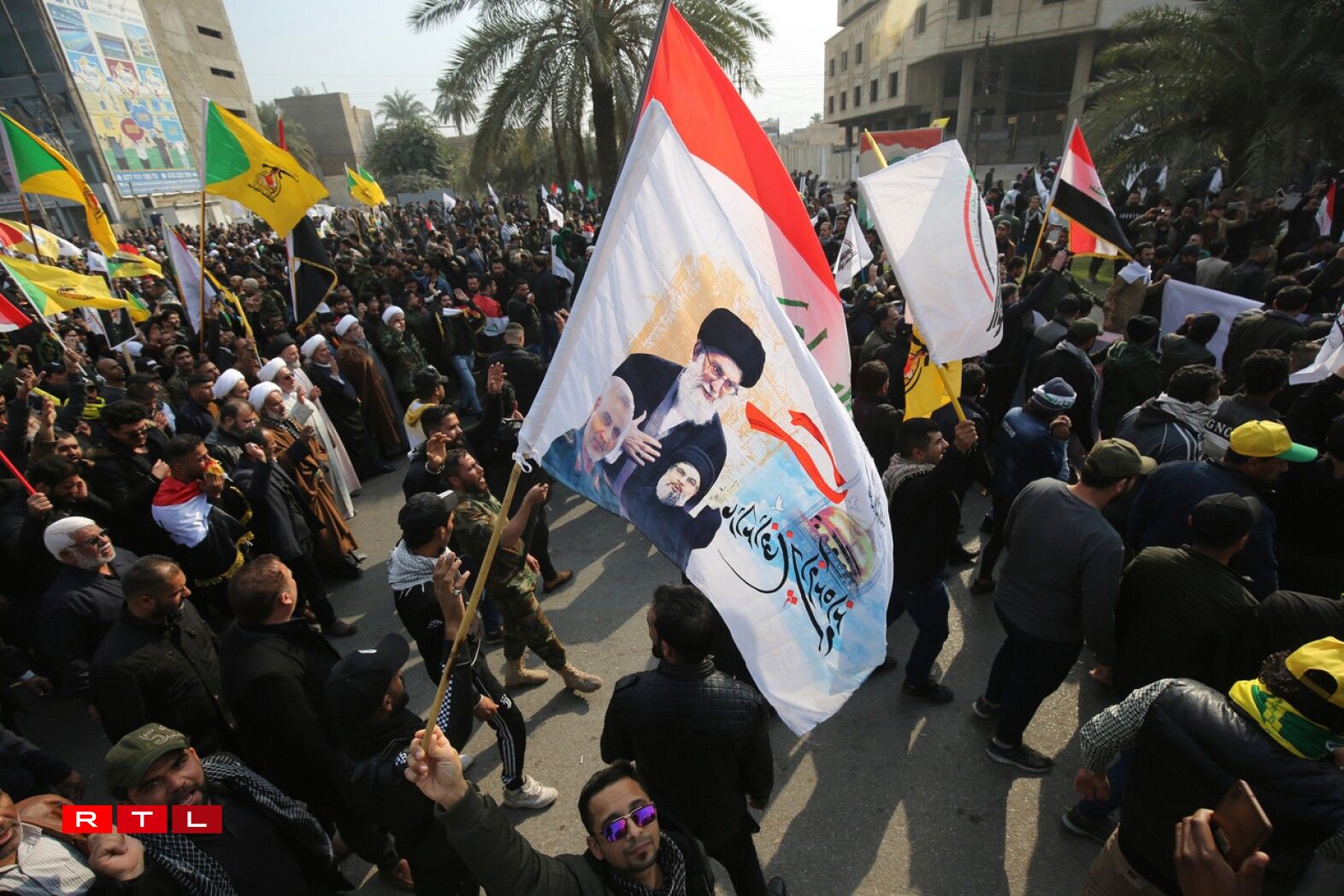 Dressed in black, they waved white Hashed flags and massive portraits of Iranian and Iraqi leaders, furiously calling for “revenge”.