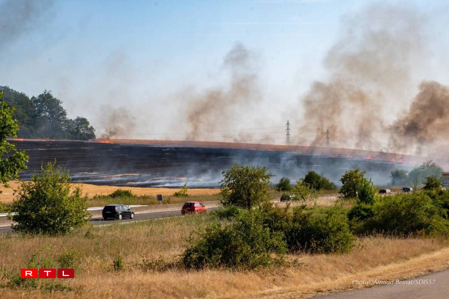 In Metz, fire fighters were called out to a harvest fire near Metz and peltre, as flames threatened nearby residences and the undergrowth.