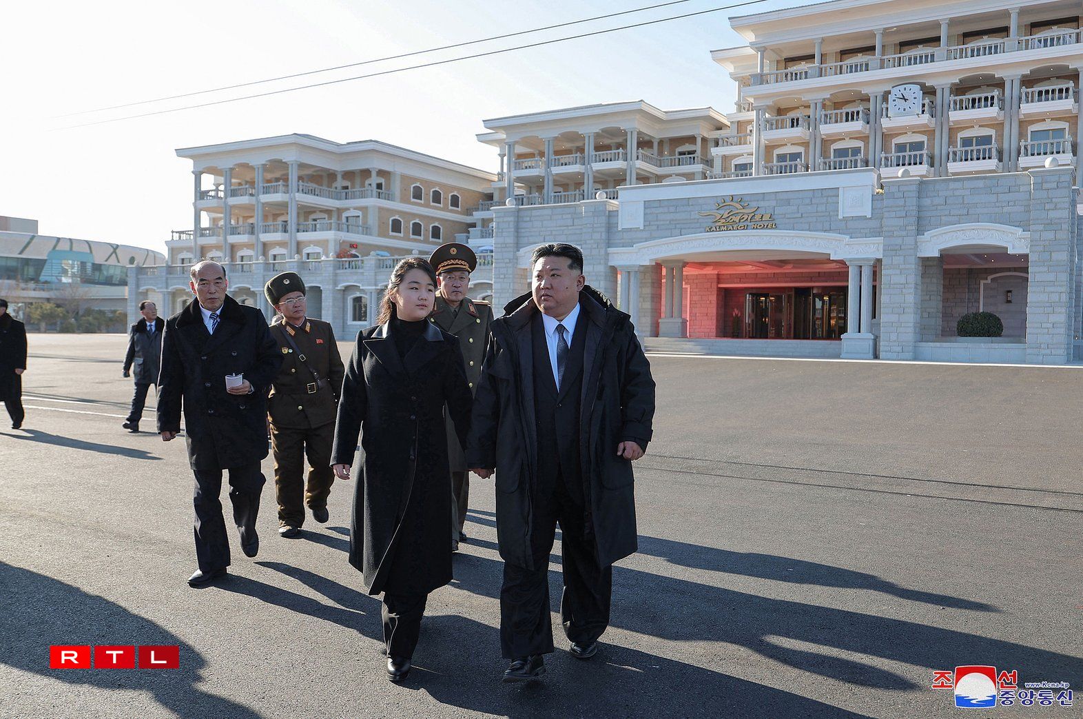 Pictures released by KCNA showed Kim and his daughter walking along the waterfront and touring the otherwise deserted hotel development.