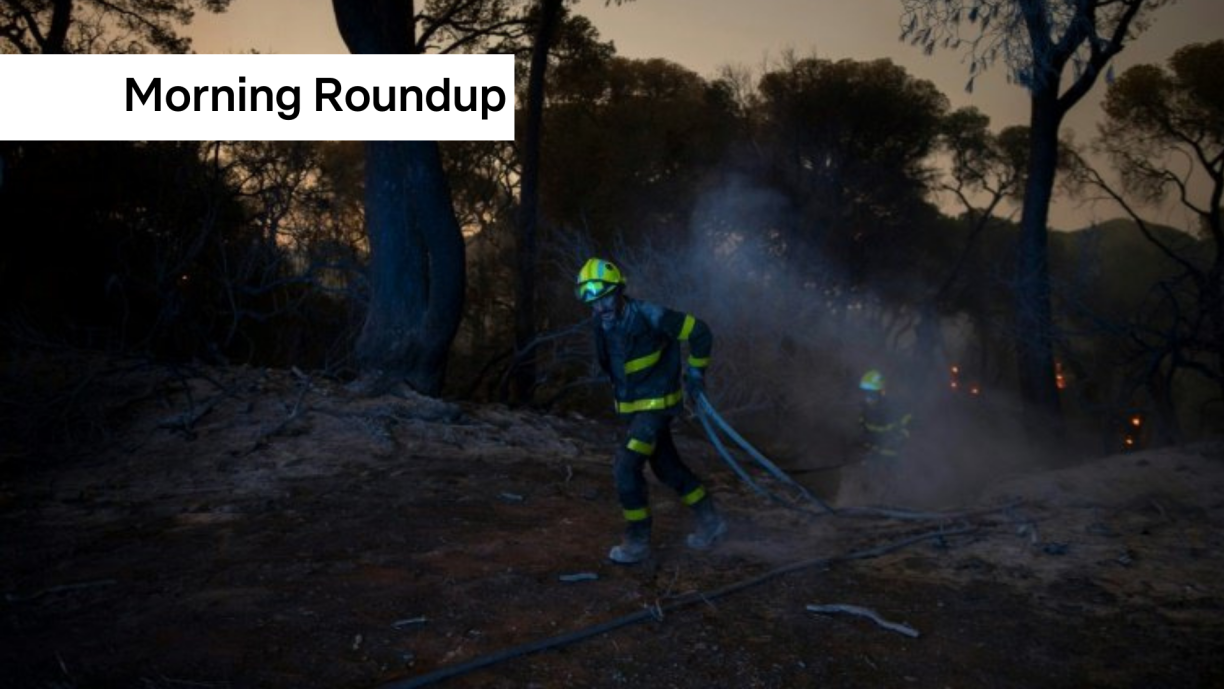 SPAIN/PORTUGAL HEATWAVE - Hundreds of firefighters are battling wildfires across Portugal, which like neighbouring Spain is sweltering in a heatwave that has triggered widespread weather alerts. The temperature rose to 46.4 degrees Celsius in Santarem, central Portugal, on Monday, a record for 2023. More than 1,000 firefighters backed by 10 water-bomber planes were battling a blaze that has already burned thousands of hectares near Odemira, southwestern Portugal, not far from the tourist hub of the Algarve. Nearly 1,500 people, residents as well as tourists, have been evacuated from the area. Much of the southern half of Spain is on orange alert, with the weather service saying temperatures are expected to top 44C today.