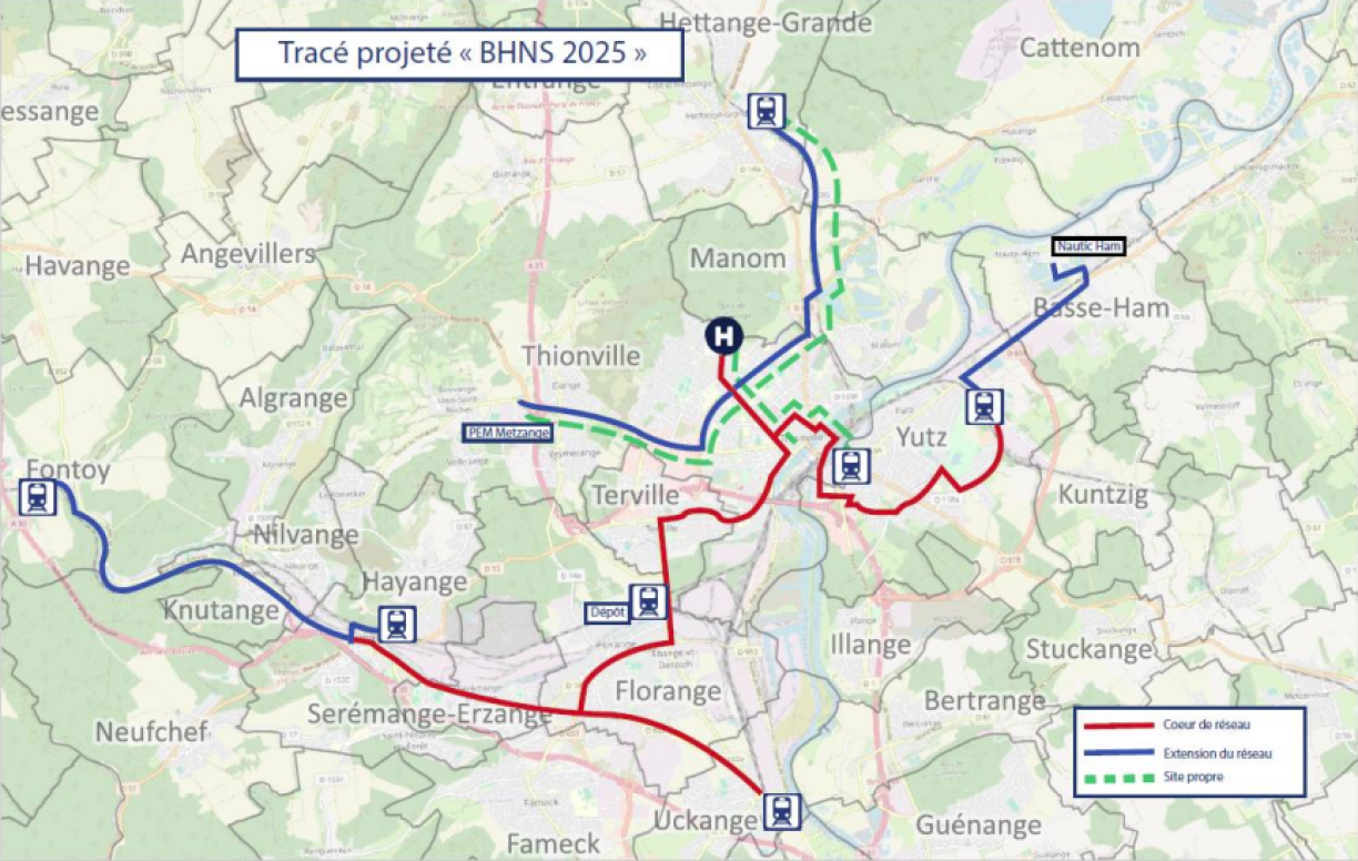 The cost of the core network is estimated at €50 million, excluding the future bus depot in Florange and the purchase of electric vehicles. By 2030, the BHNS should cover 48.5 km, including 15.5 km of dedicated bus lanes, at a total cost of around €150 million.