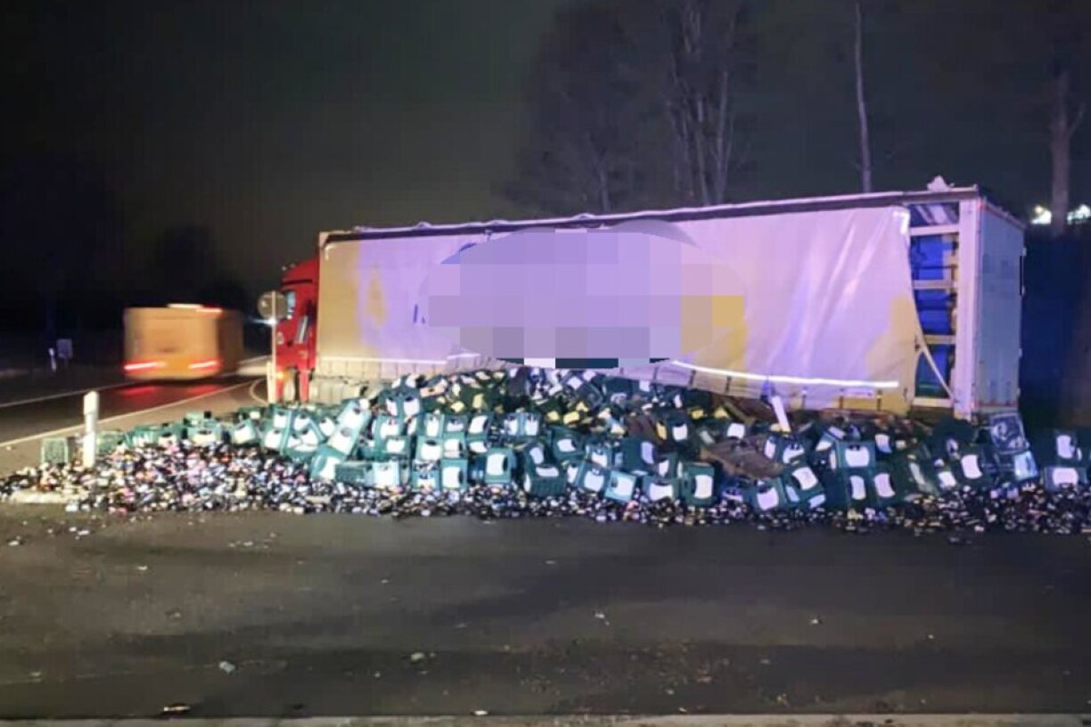 A truck lost an estimated 100 crates of empty beer bottles at shortly before 5am.