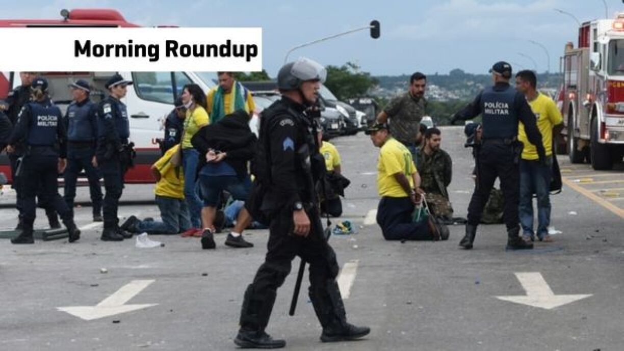 BRAZIL RIOT - Thousands of supporters of Brazil’s far-right former president Jair Bolsanaro have stormed congress in Brasilia. Crowds dressed in the national colours and draped in the Brazilian flag overwhelmed police. Some reached the deserted senate chamber, others, the Presidential palace. Some people even smashed their way into the Supreme Court. The country’s new leader Luiz Inacio Lula da Silva described the protesters as fascist vandals and promised to punish them.