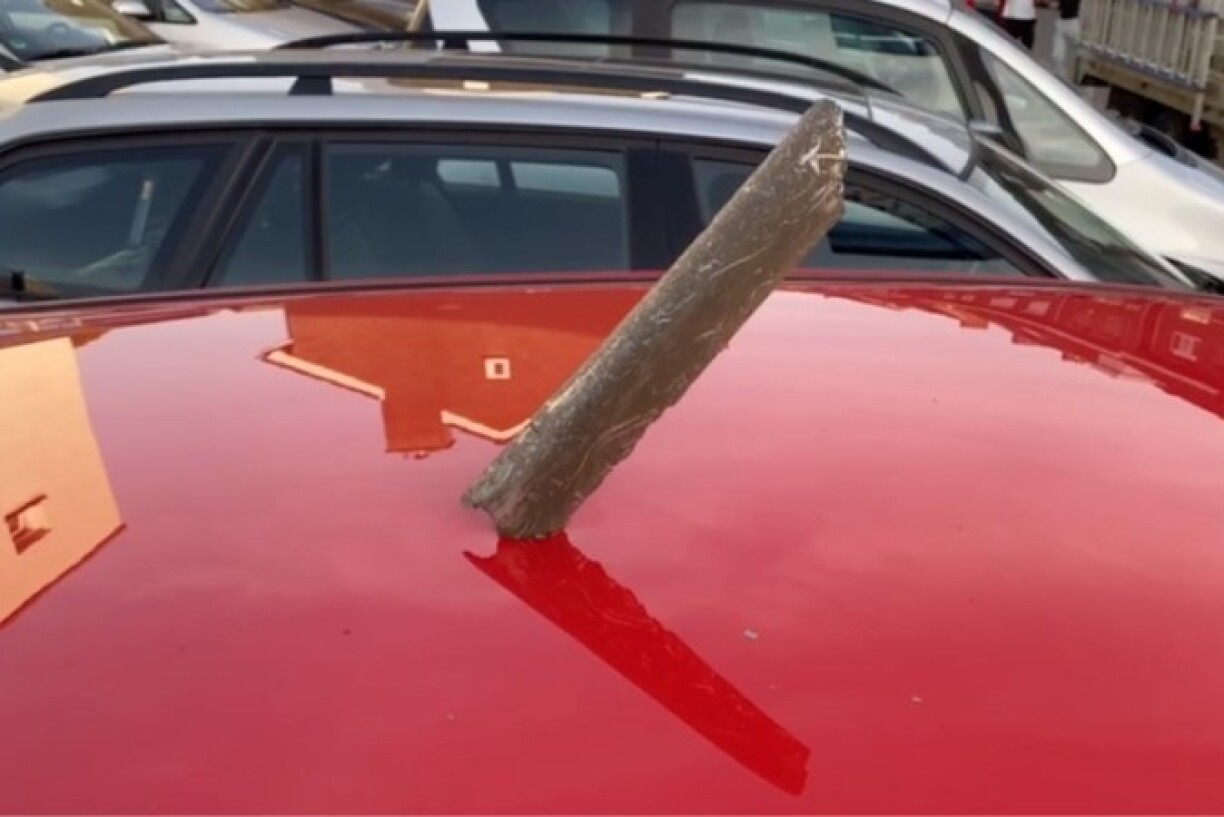 One elderly woman was treated with light head injuries, while a young child suffered light burns after touching a hot piece of metal. Metal had pierced car and home roofs in the village of Meerssen.