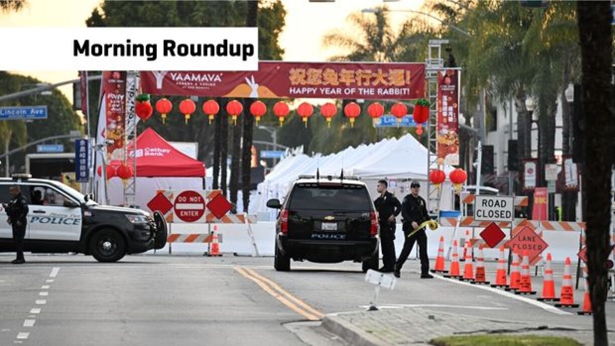 US SHOOTING - The suspect in a shooting in Los Angeles which killed 10 people and left another 10 wounded, has been found dead by the police. He shot himself inside a white van, that officers had surrounded. Officers have identified the 72-year-old man of Asian descent. Saturday’s mass shooting took place at a dance venue in Monterey Park during Lunar New Year celebrations. The city is home to one of the largest Asian-American communities in the United States.