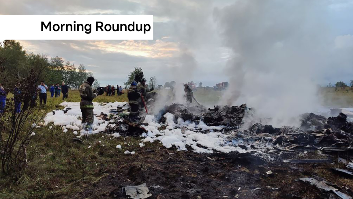 WAGNER CHIEF PRESUMED DEAD - Russian authorities say the mercenary chief, who led a coup earlier this summer against Vladimir Putin was on board a plane that crashed near Moscow, killing 10 people. The Kremlin hasn’t confirmed Yevgeny Prigozhin’s death.