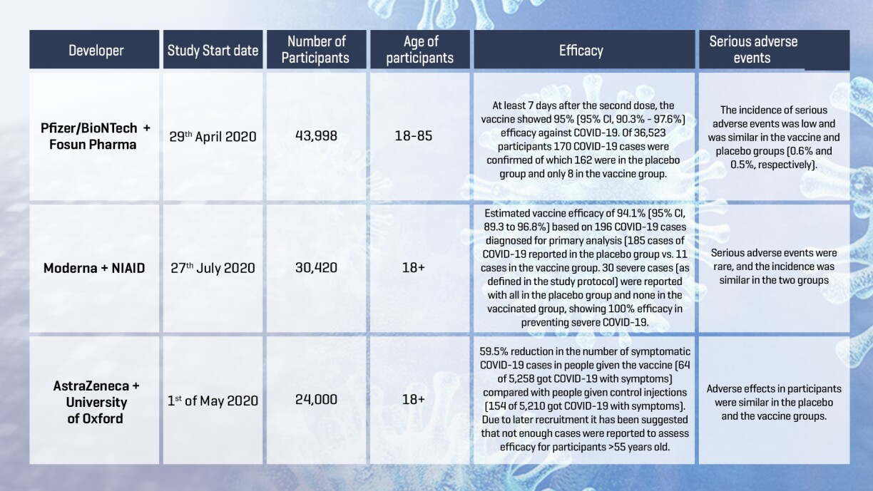 Here is a summary of clinical trial results in for the vaccines approved to date by the European Medicines Agency (EMA):