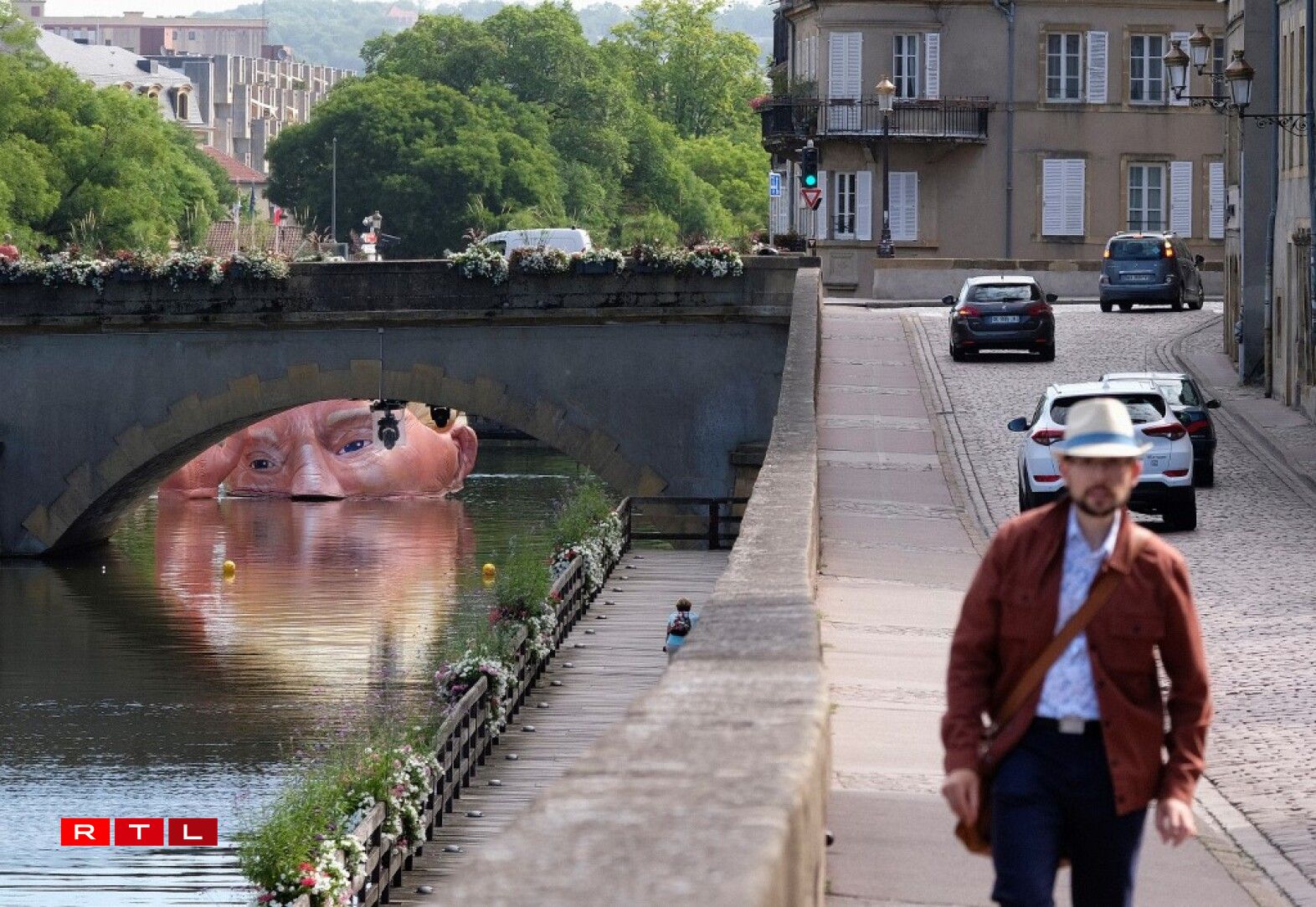 Drowning Donald Trump art installation in Metz (05.07.19)