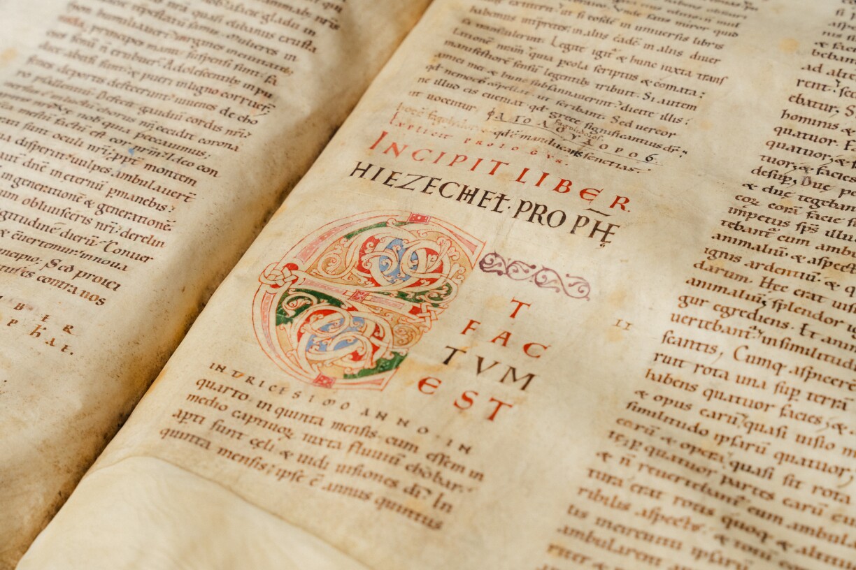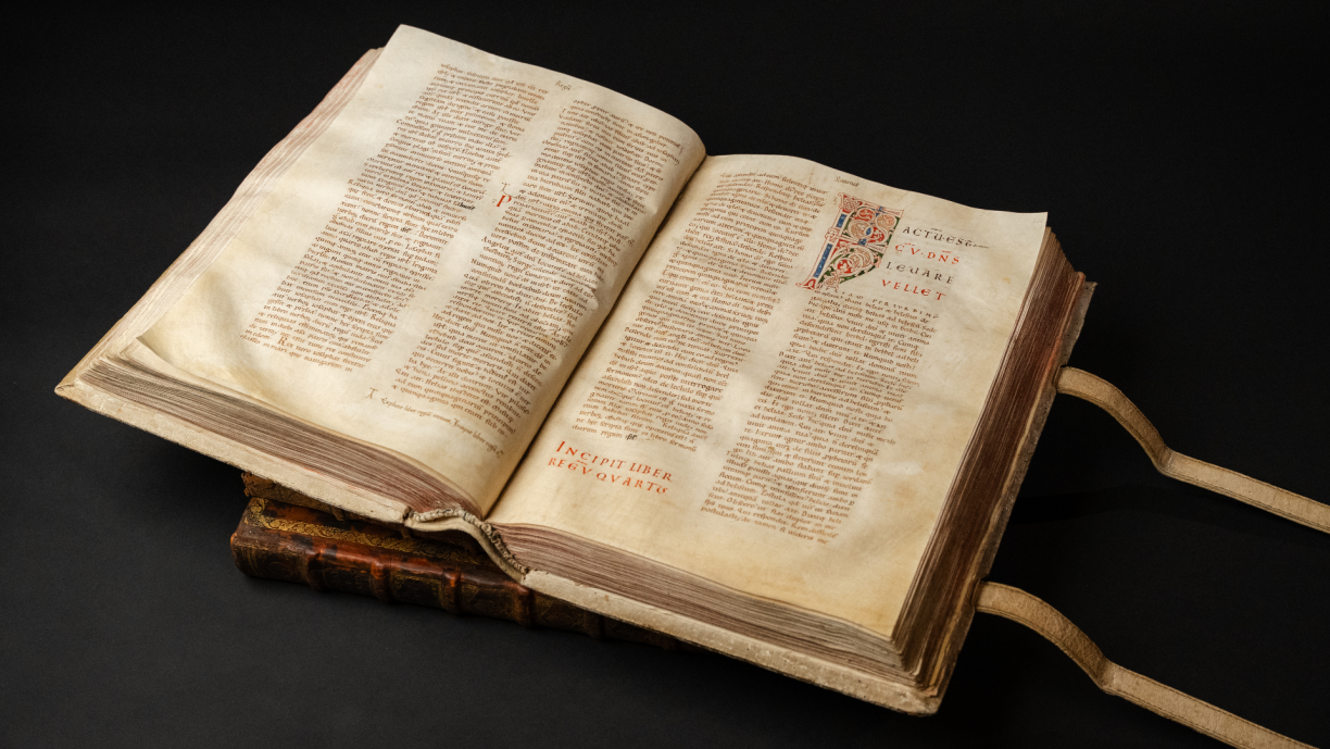 Weighing around 25 kilos and measuring 80 cm wide and 55 cm high when opened, this Bible is an extraordinary example of medieval craftsmanship. The production of its parchment required the hides of more than 230 cows, testifying to the enormous investment in resources and labour required to produce such a piece.