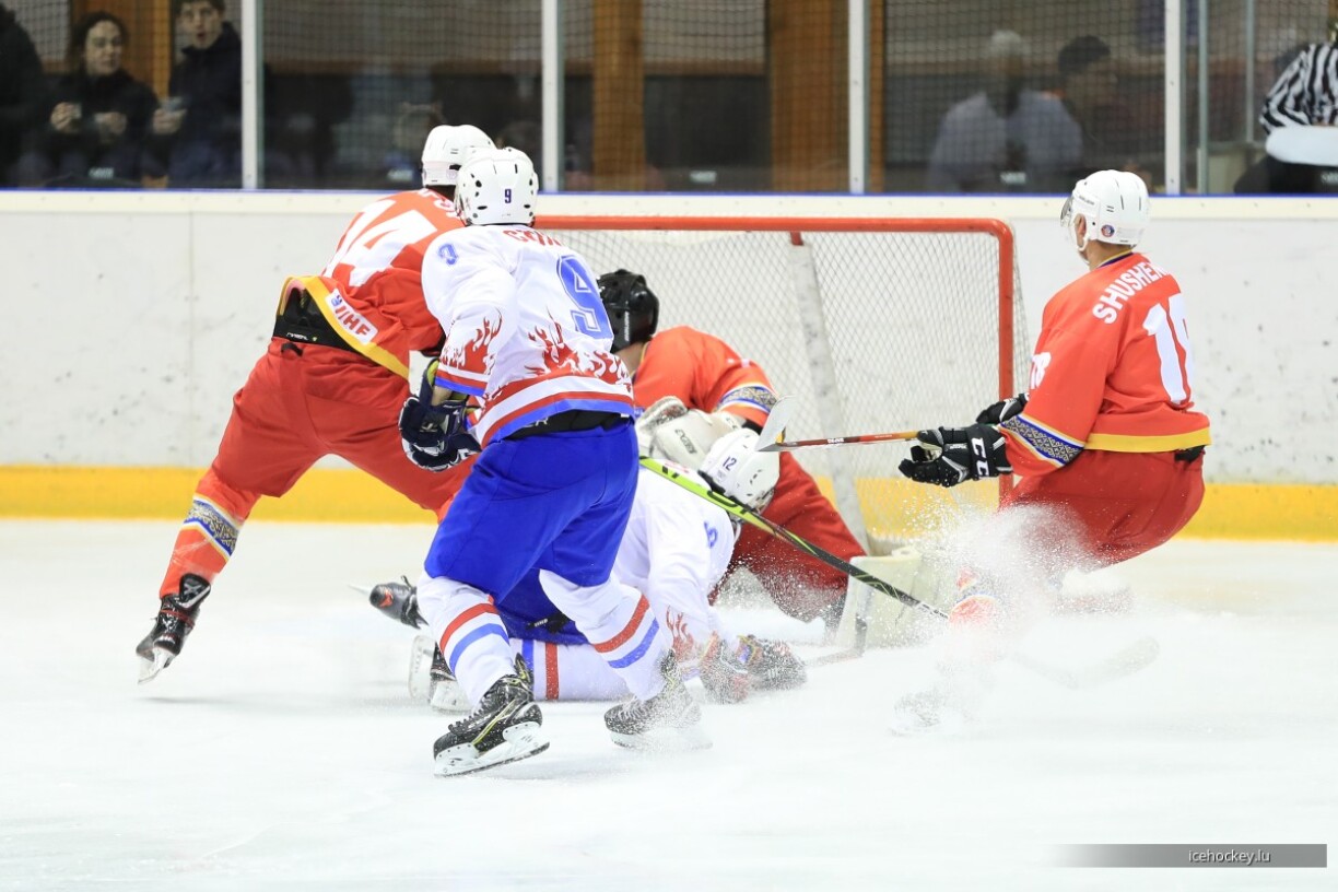 In years gone by, team Luxembourg at this point may have began to lose their composure and in desperation, begin to fill the penalty box rather than the opposition goal. This 2019 squad however showed its maturity and progression as they pushed back hard and after a grinding play in the right hand corner, Sacha Backes found Mirko Mosr charging towards the net with a precision pass. Mosr, in one fluid movement, shifted the puck from forehand to backhand and chipped it over a sprawling Petrov and into the KGZ goal. Hope had been re-kindled. The clock was ticking however and the Lions still needed 2 goals to force overtime.