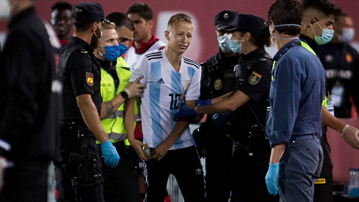 The man invaded the pitch in the 53rd minute wearing Messi’s shirt and number. He first snapped a selfie with defender Jordi Alba, then ran across the field to Lionel Messi. The man was visibly disappointed when security and police grabbed hold of him before he could reach the Argentinian footballer.