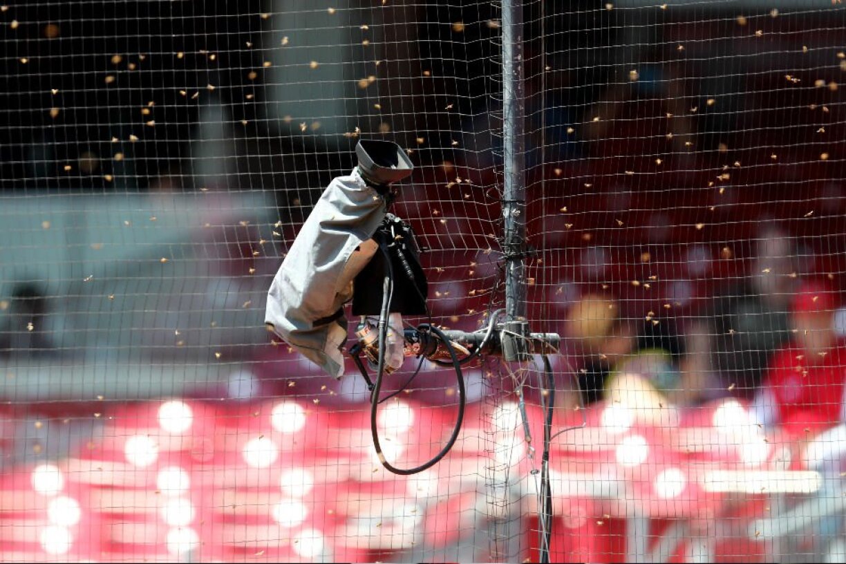 The Reds’ old Riverfront Stadium, which was demolished in 2002, saw games halted in 1976 and 1987 after bees swarmed the venue.