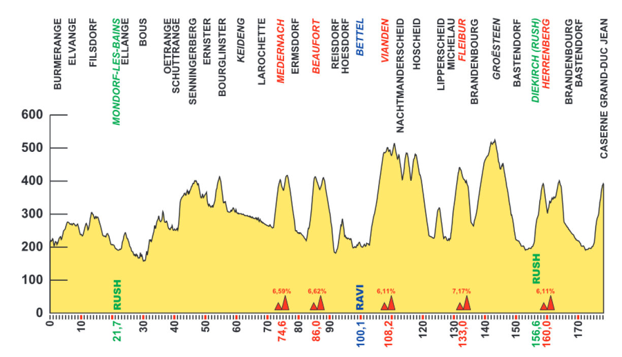 The third stage, which was also the queen stage of the race, covered 179 kilometers between Mondercange and Diekirch with plenty of elevation gain and sprints.
