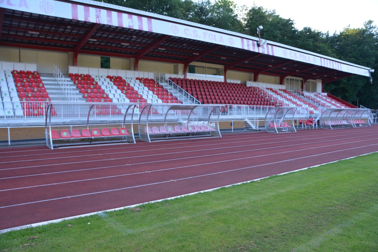 Fola play in the Stade Émile Mayrisch, which has just under 2,000 seats and a full capacity of 7,800 to put it among the biggest stadiums in the National Division. The stadium is one of a few in Luxembourg with a running track around the pitch, as it is also used by a local athletics club.
