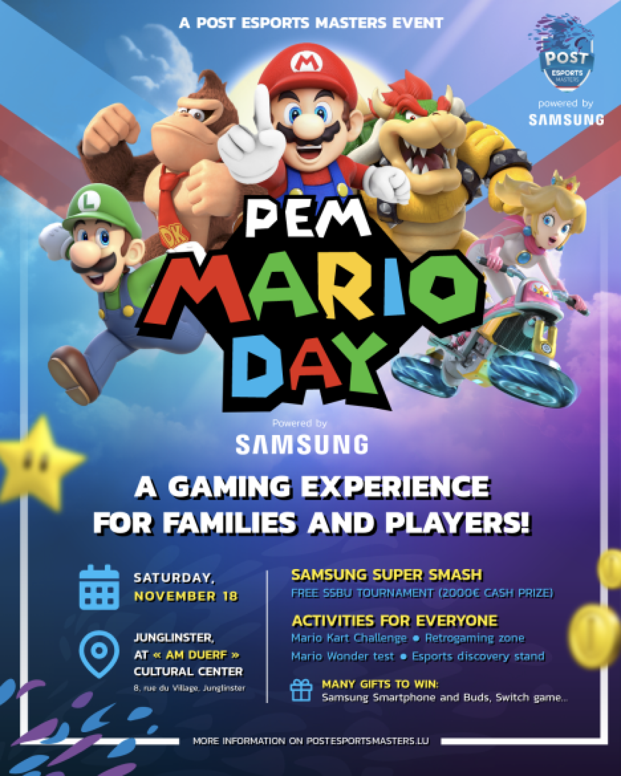 The free event, organised by POST Esports Masters and sponsored by Samsung, will take place at the Cultural Centre of Junglinster from 12 p.m. on Saturday, November 18.