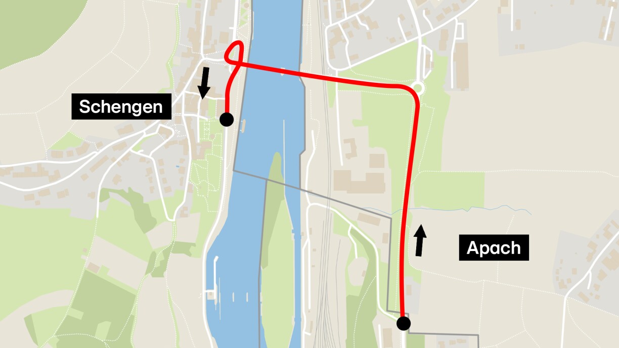 In the afternoon, the torch will arrive at the border triangle. The passage is scheduled from 1:10 PM to 1:30 PM and will cover a 1.2-kilometer route from Apach in France through Perl in Germany to Schengen in Luxembourg. In the middle of the bridge, Luxembourgish tennis player Anne Kremer will take over the Olympic flame to carry it to the Place des Étoiles in front of the European Museum. Here, the flame will be received by Grand Duke Henri, Hereditary Grand Duke Guillaume, and Prince Louis.