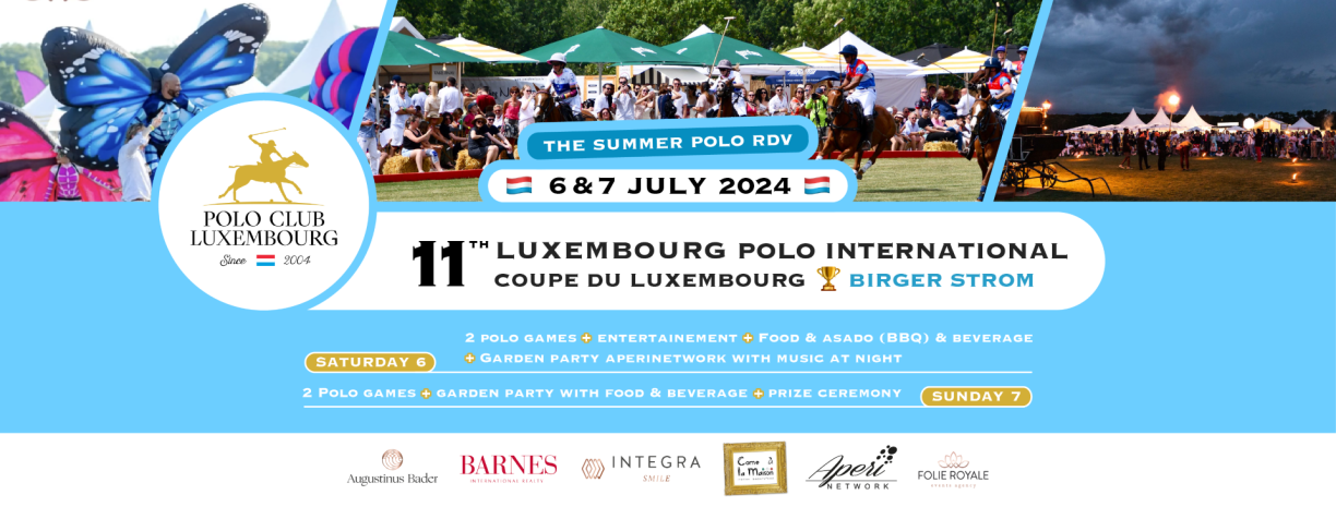 Sunday 7 July continues the fun with another Garden Party Lunch at noon and more polo action, featuring the Coupe du Luxembourg and Barnes Cup from 1:15pm onwards. The event concludes with a Prize Ceremony at 5pm and lively music until 7pm.