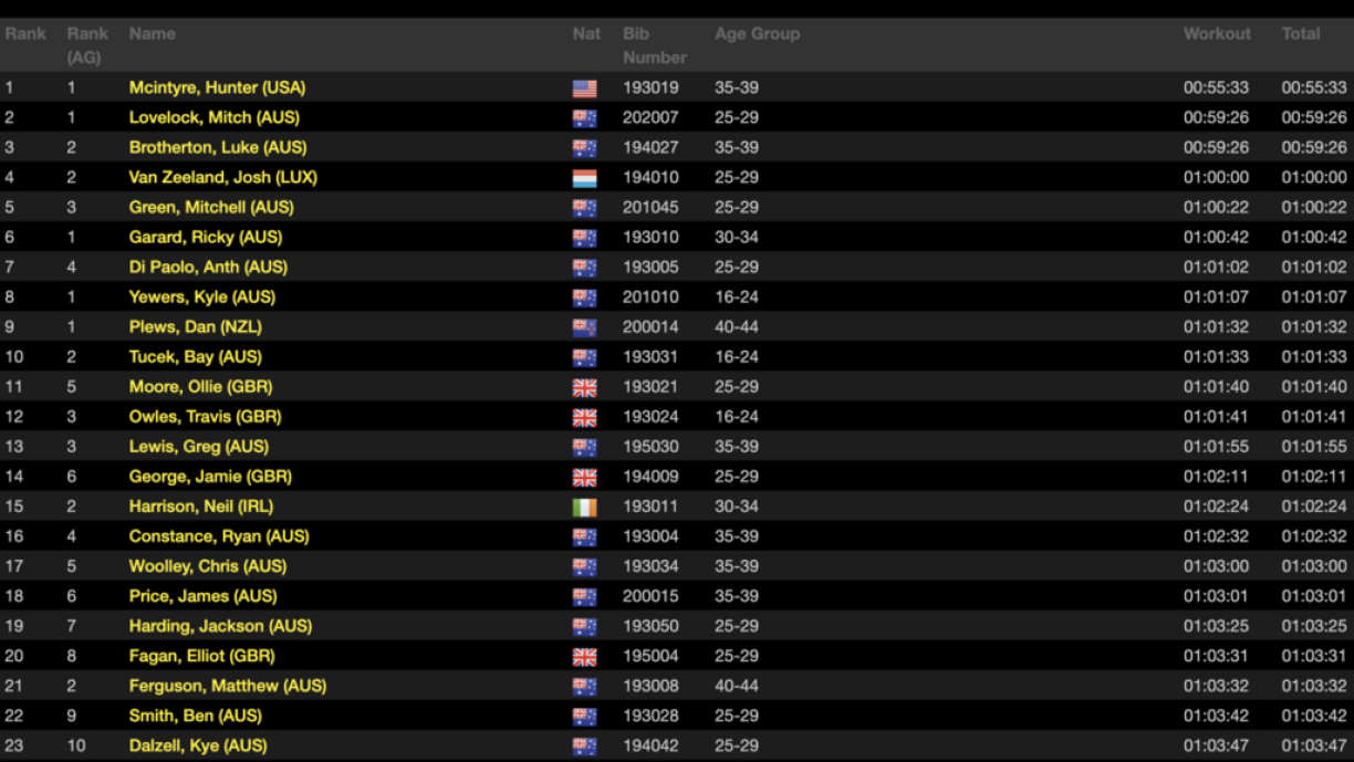 Van Zeeland ended up beating all of the big names – bar McIntyre – and narrowly missed out on the podium following the second wave of competitors finishing. For about three quarters of the race he was neck and neck with an opponent but managed to break free following the row machine station, displaying his dogged persistence.