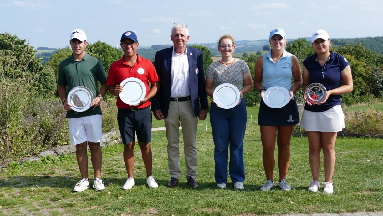 The event concluded with a prize-giving ceremony conducted by the President of the Luxembourgish Golf Federation, Mr. Marc Schmit, who took the opportunity to thank participants and was pleased that the winner’s title was earned back again to Luxembourg by the same player, Stefan Rojas, who is the only Luxembourger to win the tournament so far. He was also glad for the second place staying in the country. Nevertheless, he recognised all participants’ talent, dedication, and effort, and gave thanks to all people involved in the organisation of the event. Rojas gave thanks to the hosting club, the greenkeeper for his excellent work in having the course in an excellent condition to play, to the volunteers, to the Federation for the organisation of the event and support, and to his family.