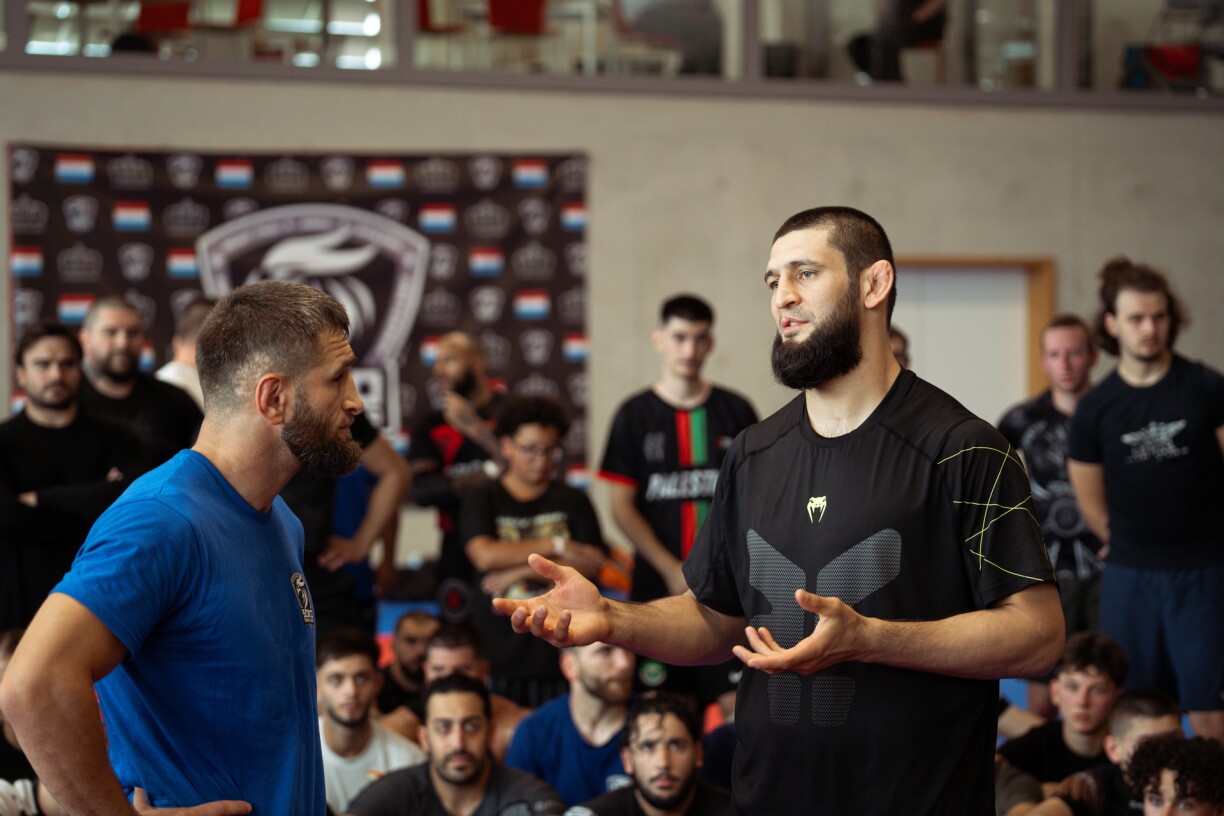 Chimaev started the training session with a quick warm-up and actively engaged with participants during the group exercises. On the agenda: combinations, take-downs, and submission techniques. The champion also took part in a Q&A session before posing for photos with his fans.