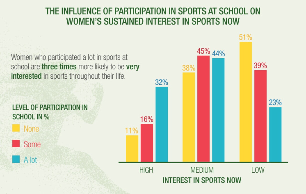 The number of women who currently play sport or who closely follow sporting events is steadily increasing. This increase is a result of changes that took place in schools in the 1970s.