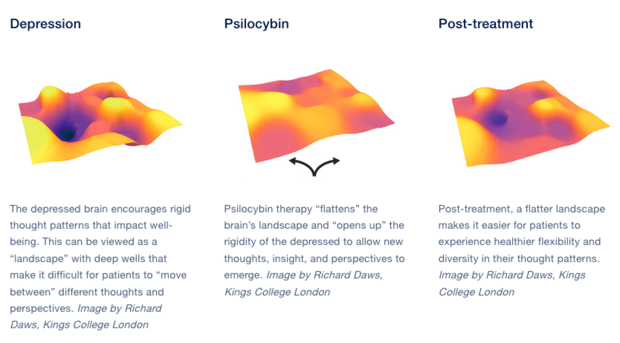 More recently, the New England Journal of Medicine published the largest study ever conducted on the use of psilocybin in therapy. Their research found that psilocybin allows our brain to be in a “more flexible state” opening up a “therapeutic window of opportunity”, which in turn allows for “more communication between brain regions”. With an estimated 100 million people worldwide suffering from treatment-resistant depression, some experts view psychedelics as an alternative way to help them.
